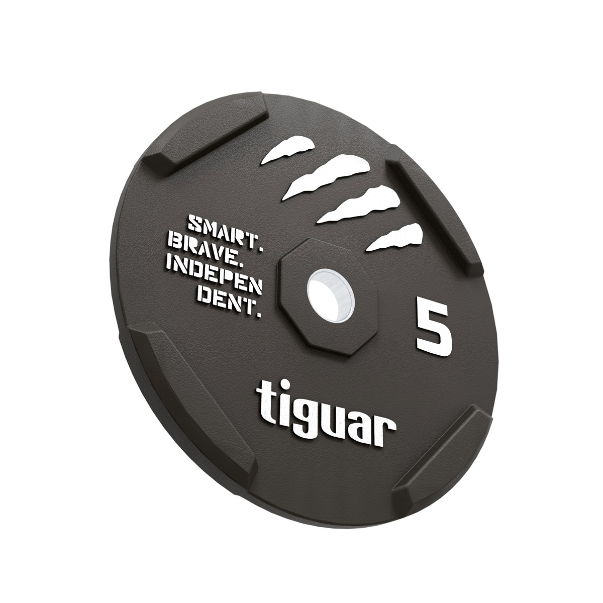 The plate features a 50 mm diameter steel core, fully compatible with Olympic barbells. This core reinforces the structure and ensures a stable, secure fit on the sleeve, minimizing play and enhancing safety during use.